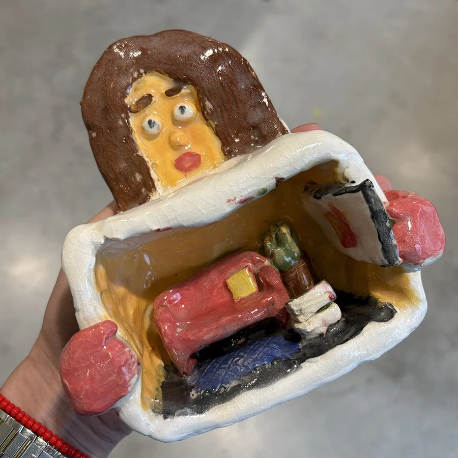 In this workshop, young artists reference popular toys and fads from the 1990s to explore the sculptural possibilities of clay. Pinch, coil, and slab construction are used to create a series of pieces, including small worlds inspired by Polly Pocket, figurine planters based on Chia Pets, game console controller sculptures, Troll Dolls, and keychains and magnets. Students decorate the surfaces of their pieces with texture tools and brightly colored underglazes.